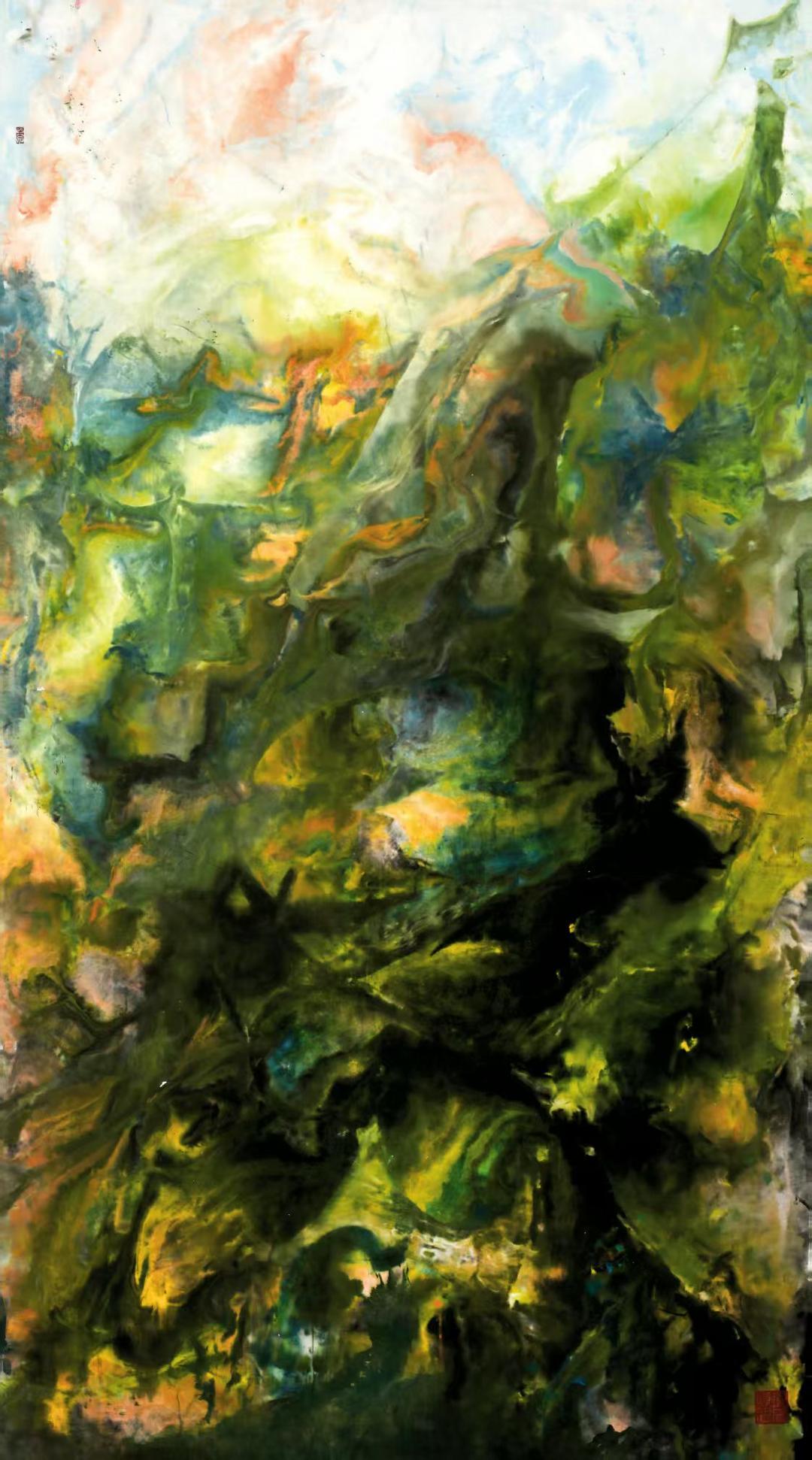 這幅200厘米乘500厘米的巨作,正是秦樹明大自然交響曲系列作品中的一幅代表作(見下圖)。