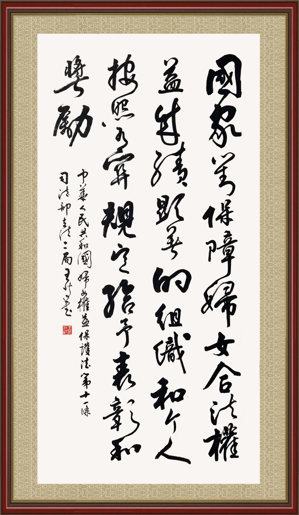 2020年7月11日,由法治日報(bào)社主辦的“書·法”系列活動(dòng)正式啟動(dòng),先后書寫《中華人民共和國民法典》《中華人民共和國憲法》《中華人民共和國民營經(jīng)濟(jì)促進(jìn)法》《中華人民共和國法治宣傳教育法》等21部法律法規(guī)。