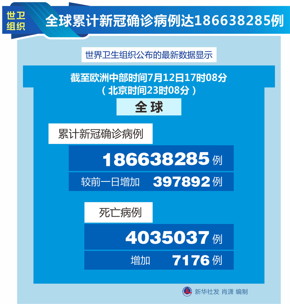 圖表:世衛(wèi)組織:全球累計新冠確診病例達(dá)186638285例