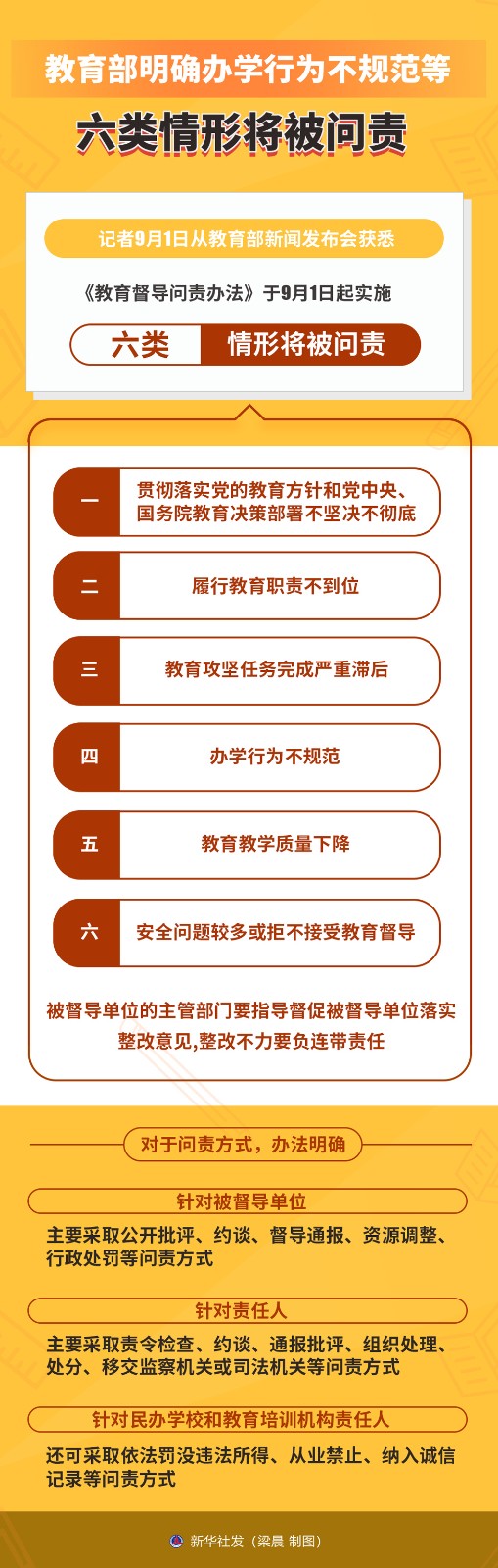 圖表:教育部明確辦學行為不規(guī)范等六類情形將被問責