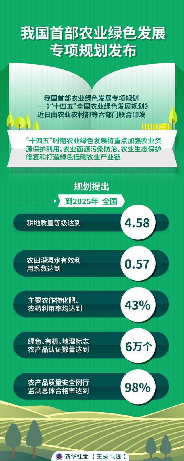 我國首部農業(yè)綠色發(fā)展專項規(guī)劃——《“十四五”全國農業(yè)綠色發(fā)展規(guī)劃》近日由農業(yè)農村部等六部門聯(lián)合印發(fā)。
