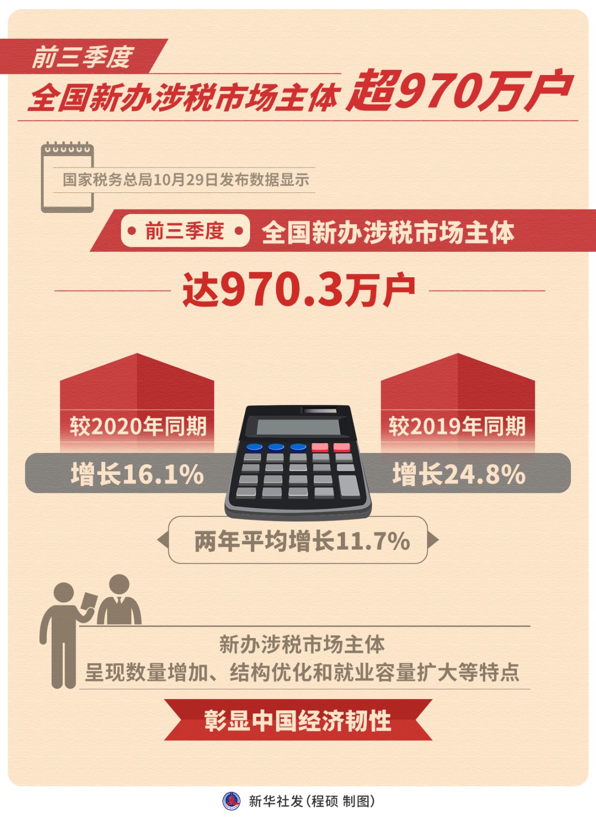 圖表:前三季度全國新辦涉稅市場主體超970萬戶