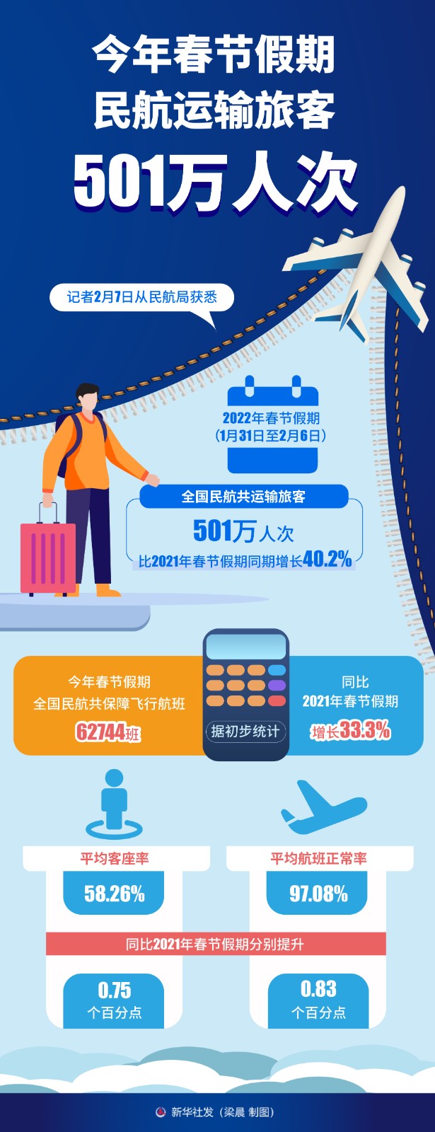 圖表:今年春節(jié)假期民航運輸旅客501萬人次