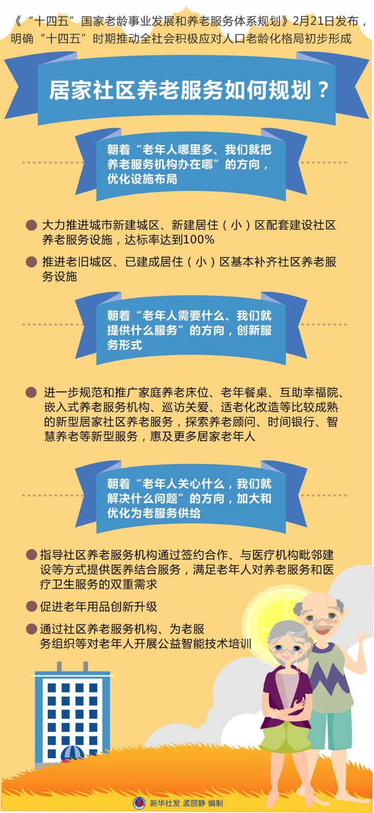 《“十四五”國家老齡事業(yè)發(fā)展和養(yǎng)老服務體系規(guī)劃》2月21日發(fā)布,明確“十四五”時期推動全社會積極應對人口老齡化格局初步形成。圍繞相關熱點問題,國家發(fā)展改革委、民政部、國家衛(wèi)生健康委、國家醫(yī)保局等部門有關負責同志回答了記者提問。將從三方面推動居家和社區(qū)養(yǎng)老服務進入高質(zhì)量發(fā)展“2.0”版本。