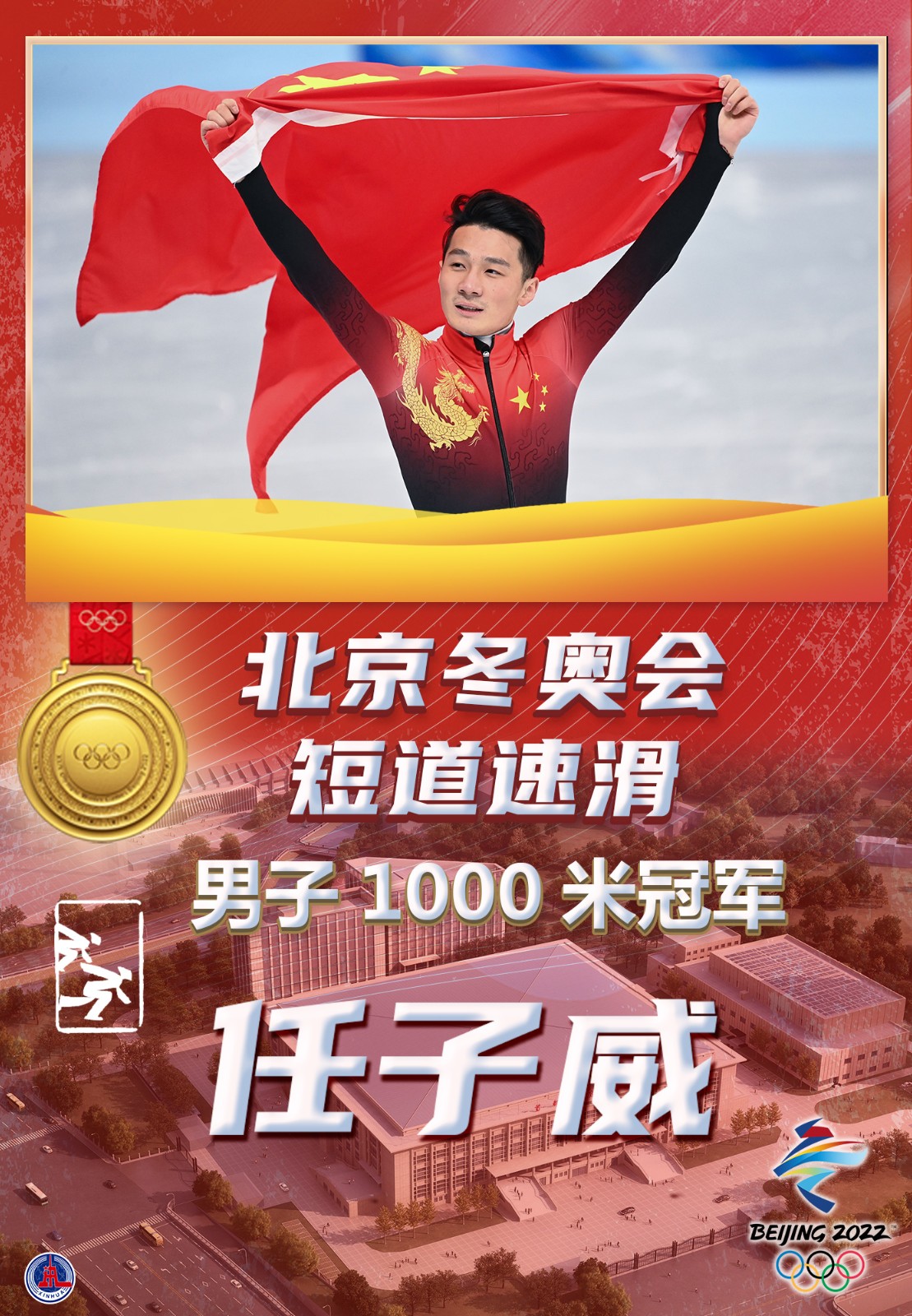 海報(bào):任子威奪得短道速滑男子1000米金牌