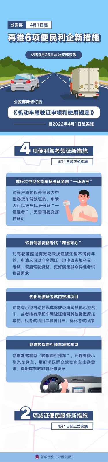 新華社記者3月25日從公安部獲悉,公安部新修訂的《機(jī)動車駕駛證申領(lǐng)和使用規(guī)定》自2022年4月1日起實施。新修訂的部門規(guī)章對公安部近年來已推出的交管改革措施予以固化,推進(jìn)改革成果制度化、法治化,并回應(yīng)群眾新要求新期待,再推出6項便民利企新措施。