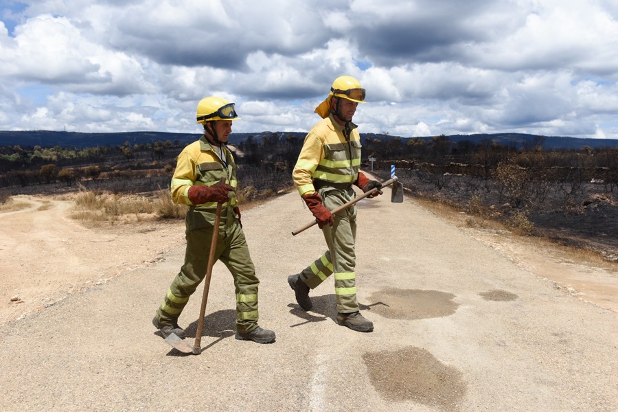 6月20日,消防員在西班牙薩莫拉省的過火區(qū)域工作。
