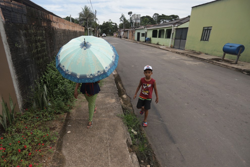 5月19日,在巴西帕拉州巴西諾沃,人們在一條鋪設(shè)好的道路上行走。
