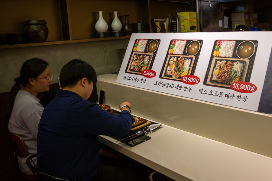 7月9日,人們?cè)陧n國(guó)高陽(yáng)市一家餐廳用餐。