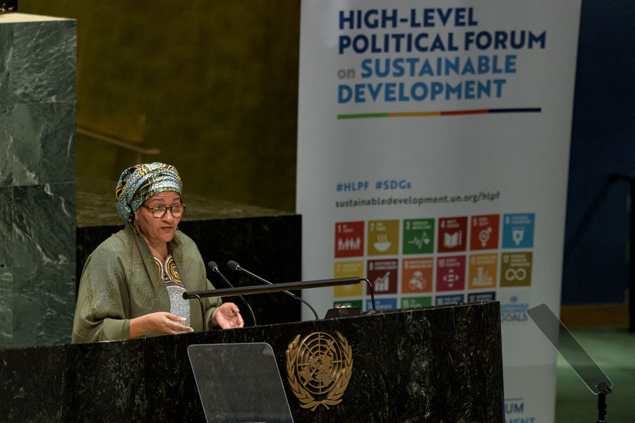7月5日,在位于紐約的聯(lián)合國總部,聯(lián)合國常務(wù)副秘書長阿明娜·穆罕默德在聯(lián)合國可持續(xù)發(fā)展高級(jí)別政治論壇上發(fā)言。