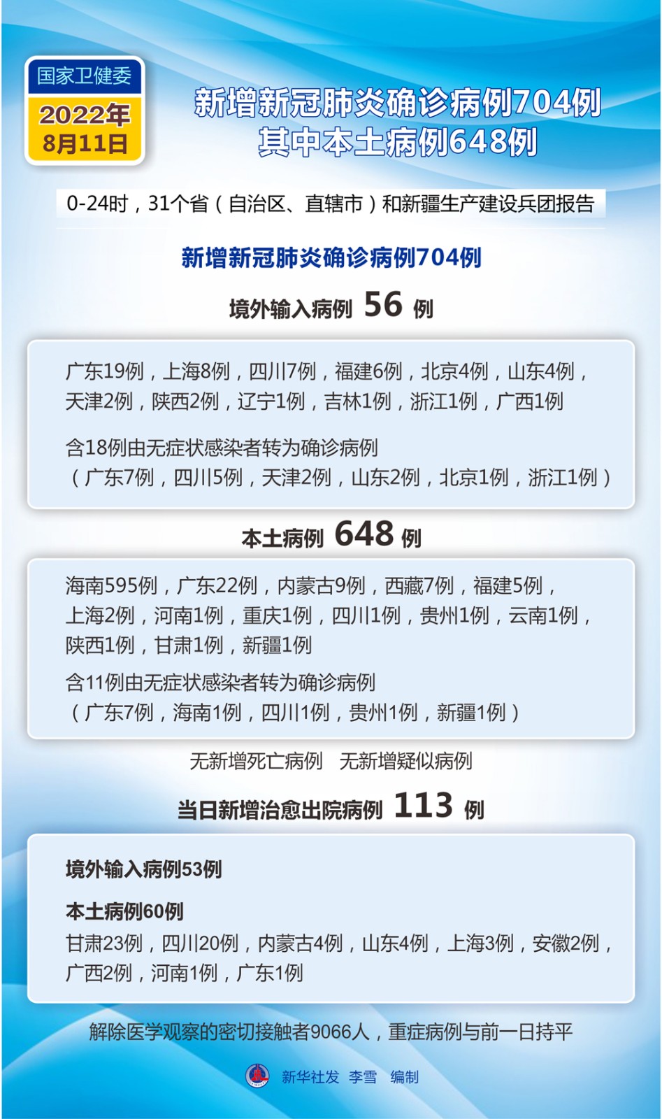 (圖表)國家衛(wèi)健委:8月11日新增新冠肺炎確診病例704例 其中本土病例648例
