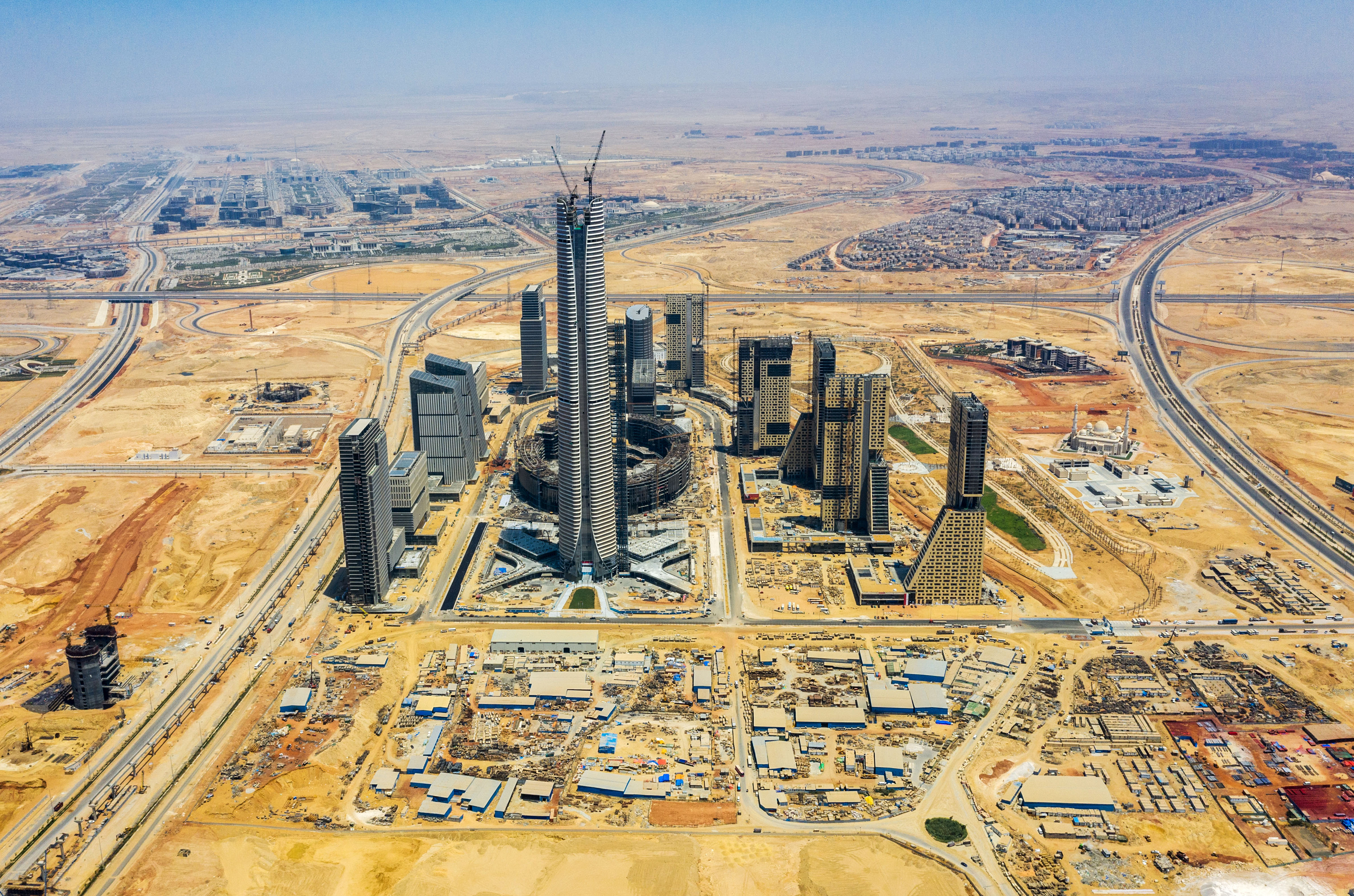 埃及新行政首都中央商務(wù)區(qū)項(xiàng)目總占地面積約50.5萬平方米,包含20個(gè)高層建筑單體及配套市政工程,由中國建筑股份有限公司埃及分公司承建。