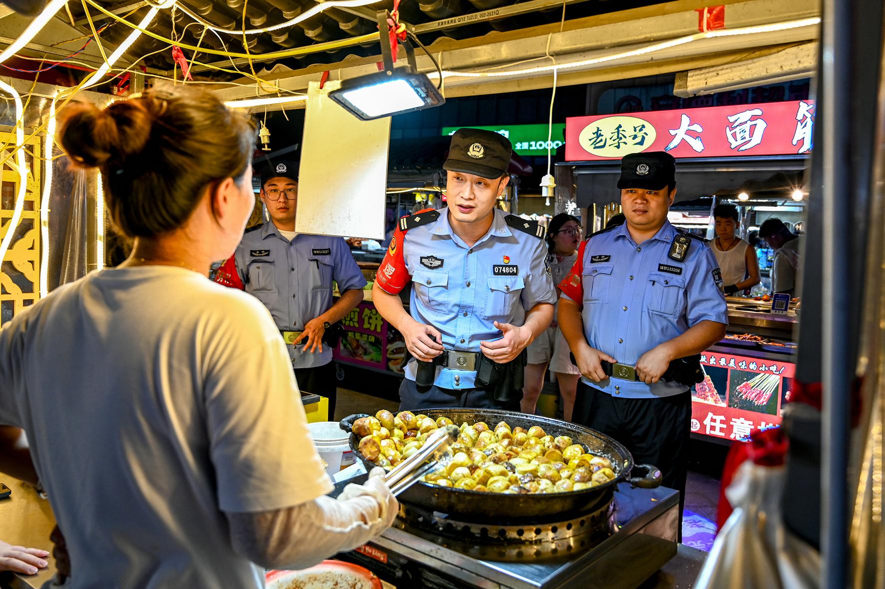 9月23日晚,安徽省馬鞍山市和縣公安局民警正在開展夜間巡邏,向市民了解治安狀況,聽取群眾對(duì)公安工作的意見(jiàn)和建議。今年以來(lái),該縣公安機(jī)關(guān)全面落實(shí)“見(jiàn)警力、見(jiàn)警車、見(jiàn)警燈”工作要求,對(duì)重點(diǎn)區(qū)域、重點(diǎn)時(shí)段開展巡邏管控,全力提升群眾的安全感。