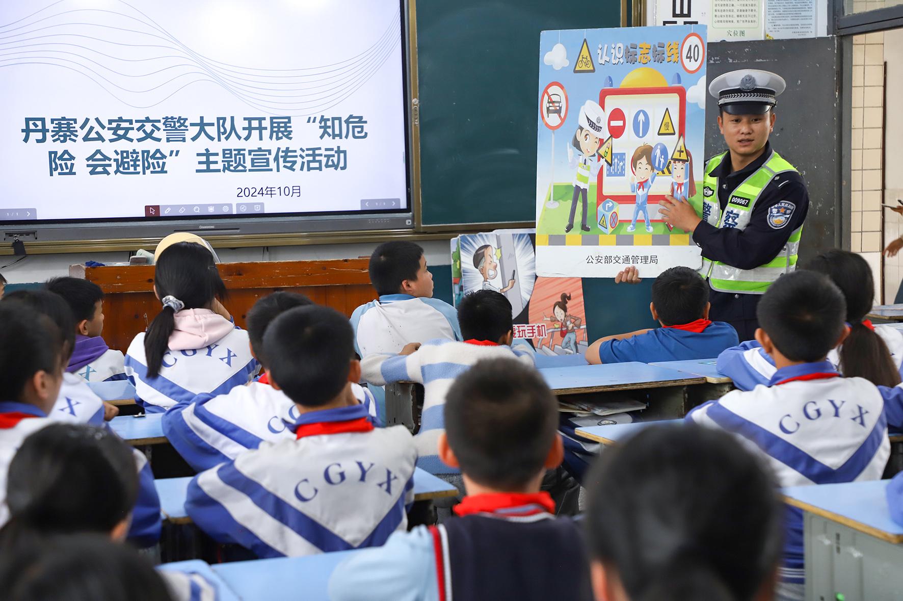 10月18日,貴州省丹寨縣公安局交通警察大隊民警走進轄區(qū)城關一小,以主題班會的形式向同學們開展交通安全宣傳教育。