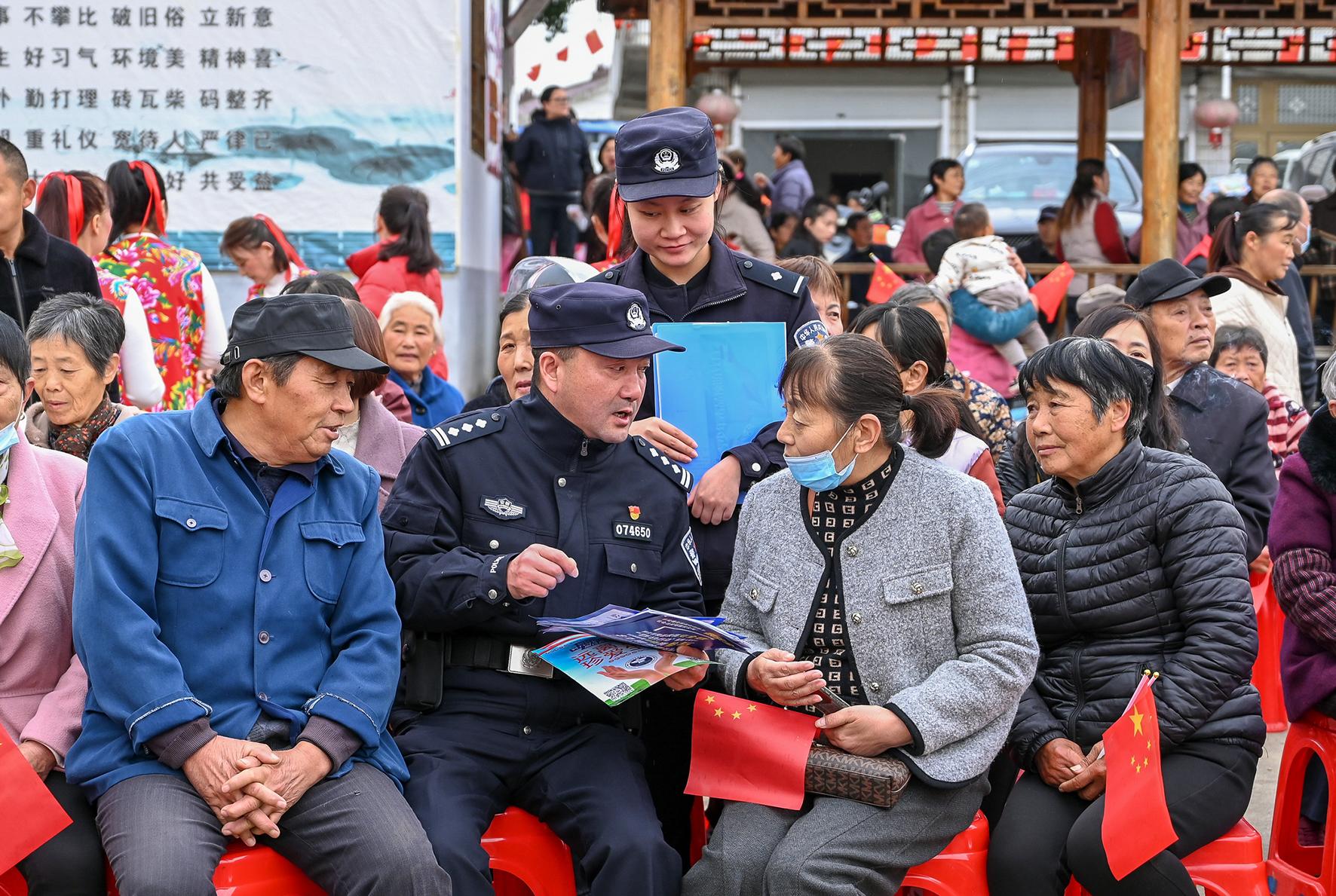 11月18日,在安徽省馬鞍山市和縣石楊鎮(zhèn)“安徽省2024四季村晚”現(xiàn)場,石楊派出所民警正在向村民開展普法宣傳,講解網絡詐騙、禁毒和冬季防盜知識,讓村民在享受精神大餐的同時,提升法治意識和自我保護能力。