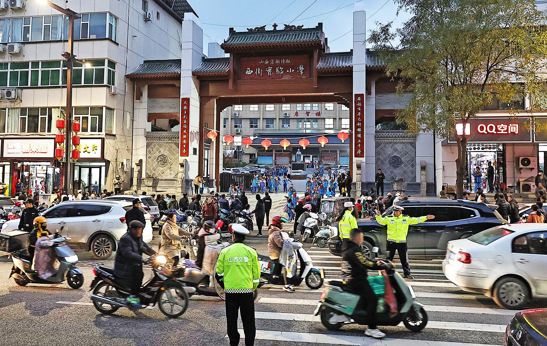 11月18日,山西省運城市新絳縣公安局交警大隊和龍興派出所民警在轄區(qū)西街實驗小學(xué)護學(xué)崗維護校園周邊交通秩序。