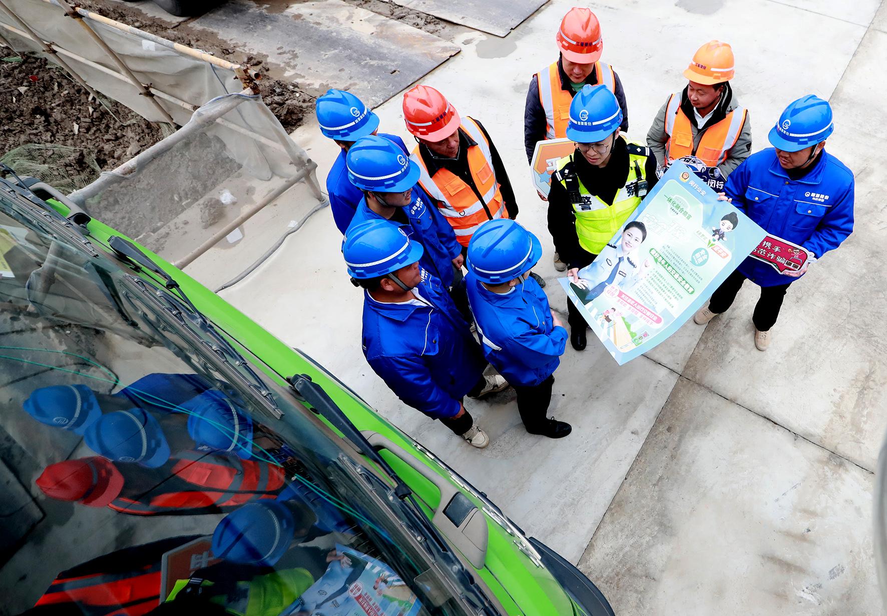 12月13日,上海市公安局閔行分局交警支隊民警在浦江鎮(zhèn)浦江基地1號地塊在建工地開展現(xiàn)場督導(dǎo)檢查,并對現(xiàn)場施工作業(yè)人員開展交通安全融合宣傳。