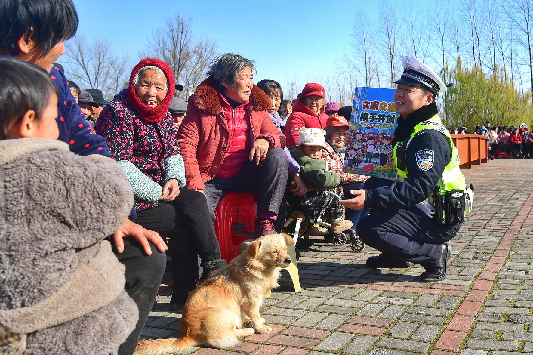 12月16日,安徽省巢湖市公安局交警大隊民警在蘇灣鎮(zhèn)坊集社區(qū)“四季村晚”群眾文藝匯演現(xiàn)場,向群眾開展交通安全宣傳。