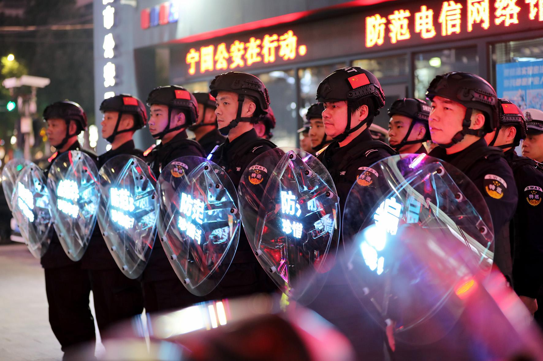 為維護春節(jié)期間社會安全穩(wěn)定,1月20日,安徽省寧國市公安局組織特警與交警聯(lián)合開展“閃亮警務(wù)”冬防模式,有效提高轄區(qū)群眾的安全感。