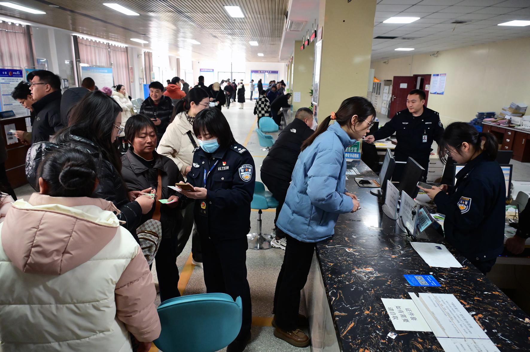 2月5日,安徽省固鎮(zhèn)縣公安局交管大隊(duì)車管大廳迎來(lái)車駕管業(yè)務(wù)高峰。固鎮(zhèn)縣公安局交管大隊(duì)通過(guò)調(diào)整窗口人員配置、優(yōu)化辦事流程、推行延時(shí)服務(wù)等便民措施,確保群眾及時(shí)辦結(jié)業(yè)務(wù)。