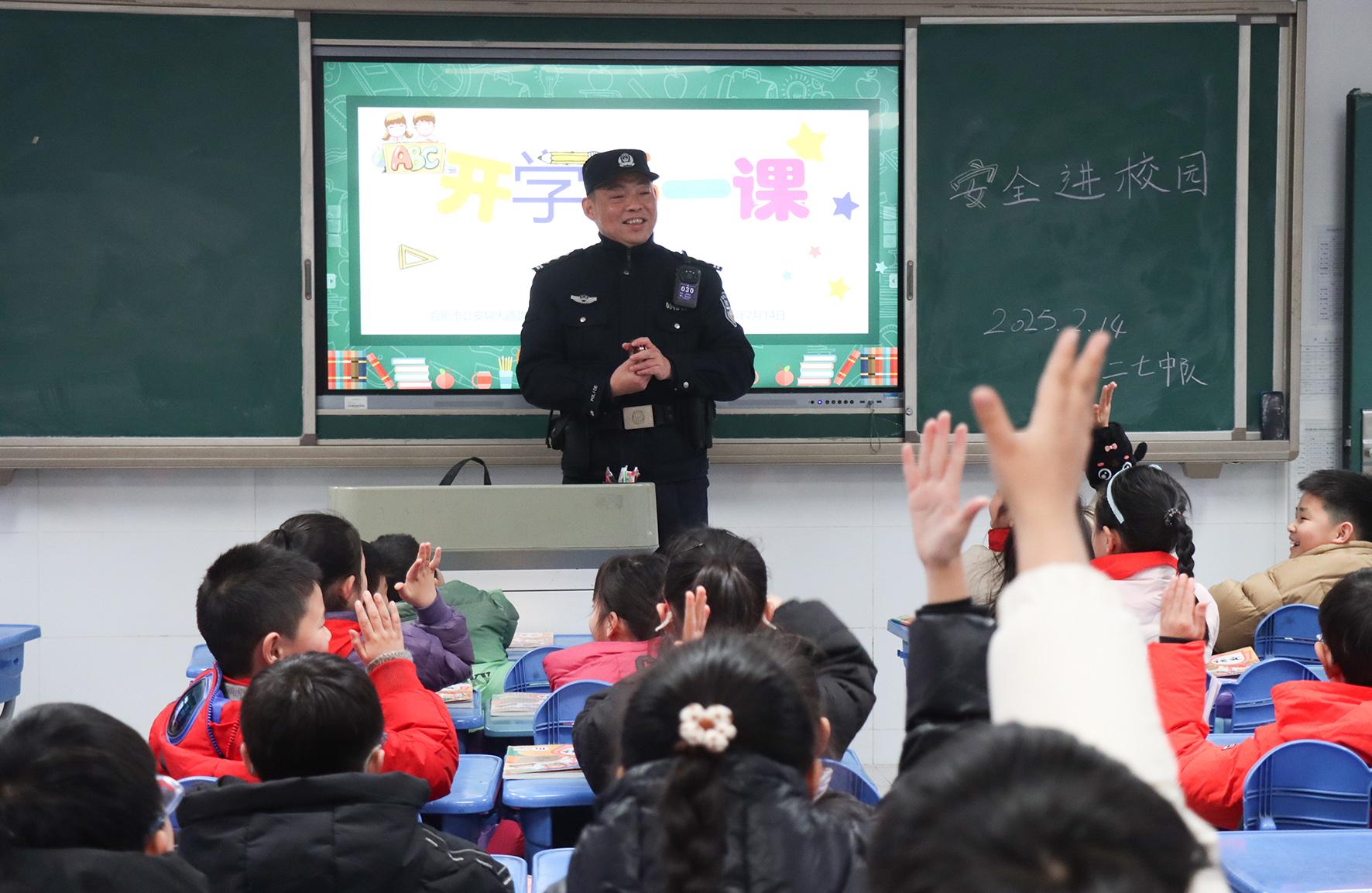 2月14日,安徽省合肥市公安局瑤海分局大通路派出所組織警力走進(jìn)轄區(qū)滁州路小學(xué)開(kāi)展“開(kāi)學(xué)第一課”活動(dòng)。
