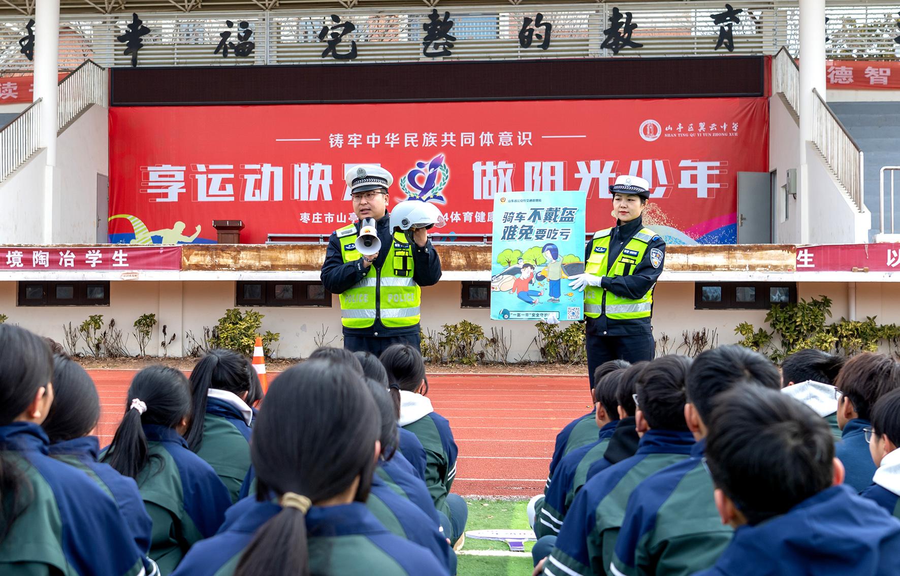 2月14日,山東省棗莊市公安局山亭分局交警大隊(duì)組織民輔警走進(jìn)轄區(qū)翼云中學(xué),開(kāi)展春季“開(kāi)學(xué)第一課”交通安全宣傳活動(dòng)。