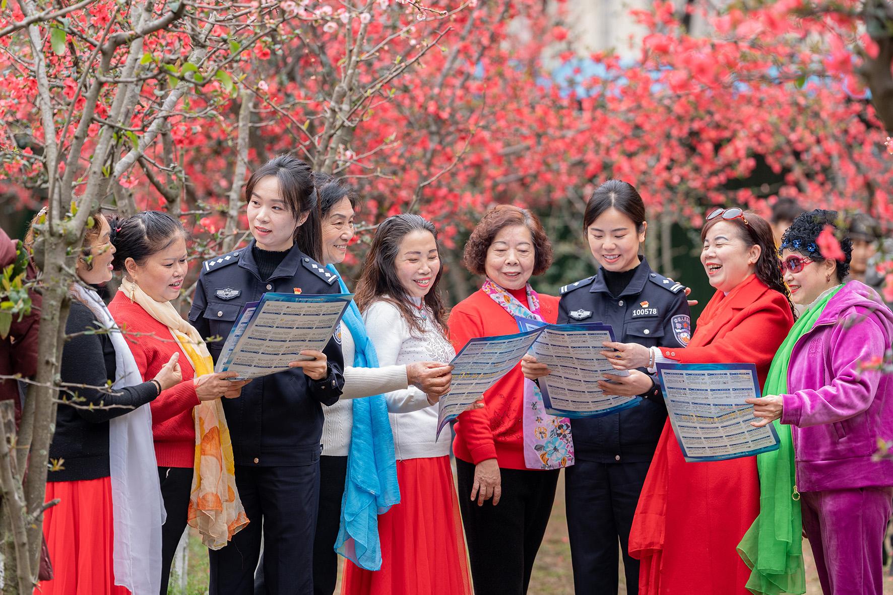 3月4日,四川省綿陽(yáng)市公安局涪城區(qū)分局民警走進(jìn)公園、廣場(chǎng)向市民宣講反詐知識(shí)。