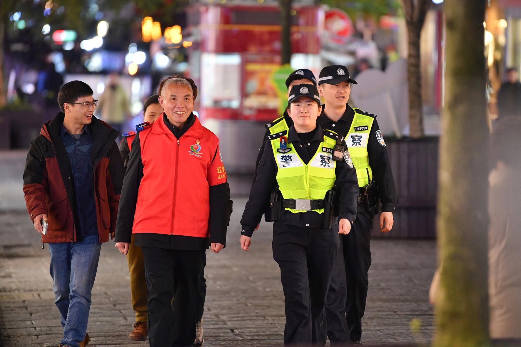3月18日,貴州省遵義市遵義會(huì)議會(huì)址派出所民輔警與遵義市志愿服務(wù)聯(lián)合會(huì)平安志愿者共同開(kāi)展夜間巡邏工作,全力守護(hù)紅色圣地平安。