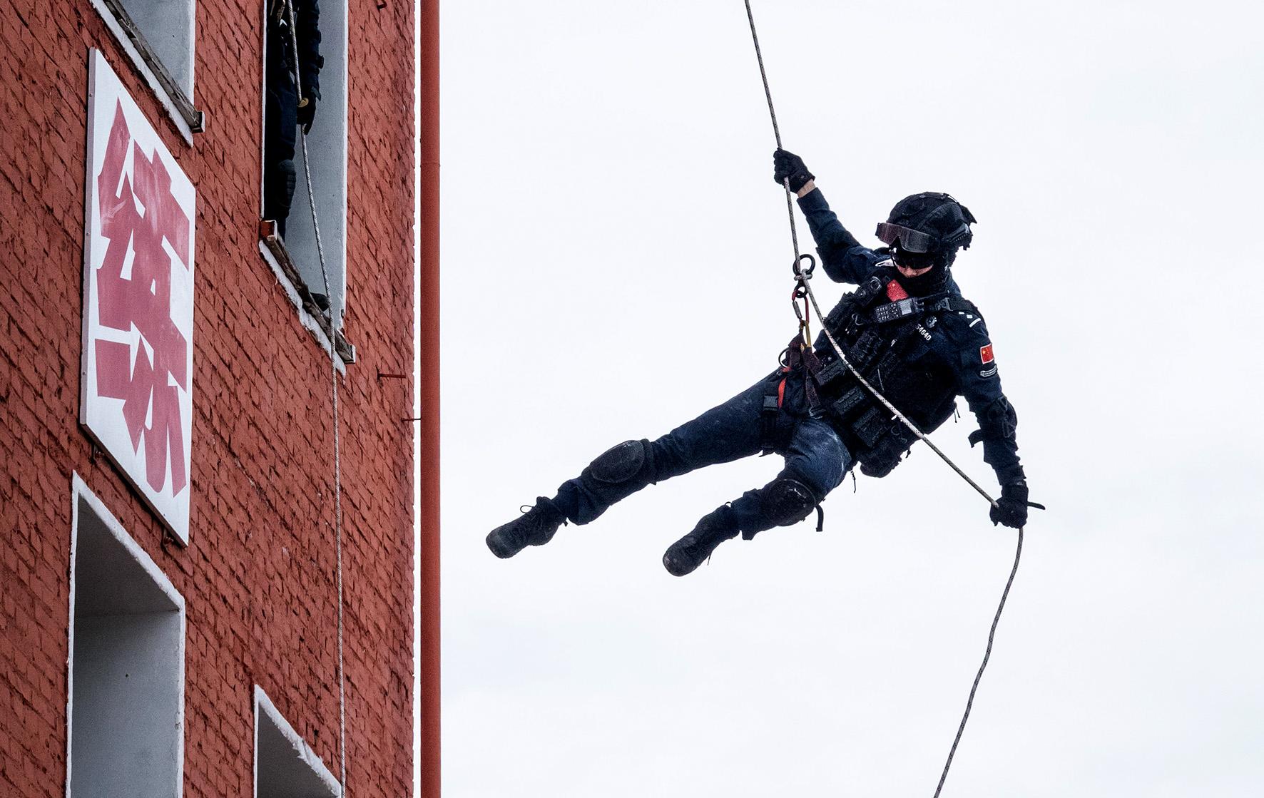 4月8日,內(nèi)蒙古出入境邊防檢查總站巴爾虎突擊隊(duì)在呼倫貝爾某訓(xùn)練場(chǎng)開展立體化邊境封控演練,演練設(shè)置樓道搜索、密閉空間對(duì)抗等7個(gè)高難課目,從嚴(yán)從難、緊貼實(shí)戰(zhàn),錘煉隊(duì)員們綜合素質(zhì)。