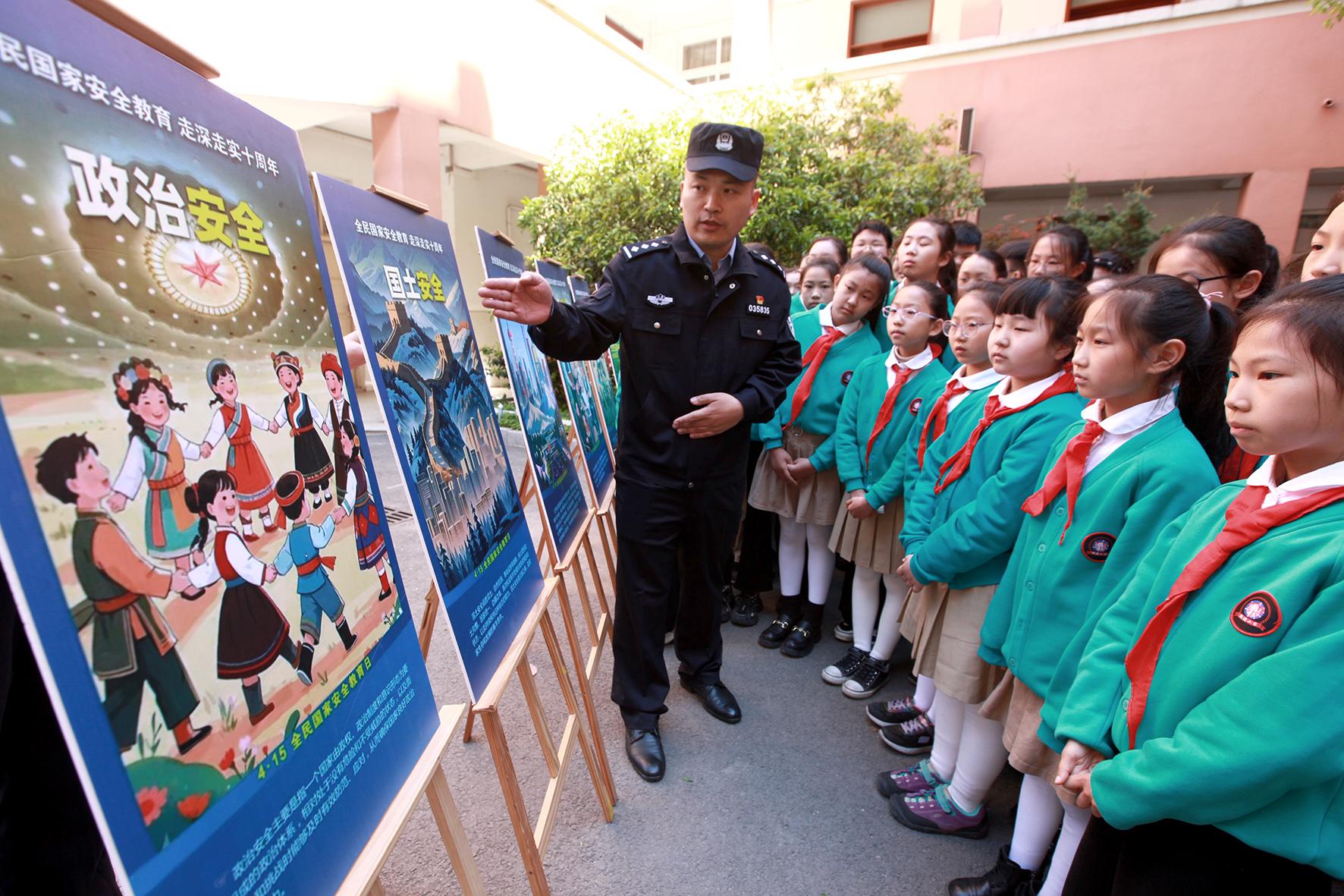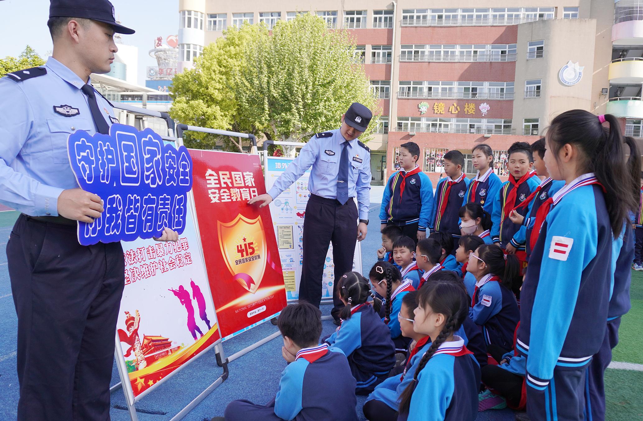 4月14日,江蘇省徐州市公安局鼓樓分局巡特警大隊聯合環(huán)城派出所在徐州市鼓樓小學開展全民國家安全教育日進校園活動。