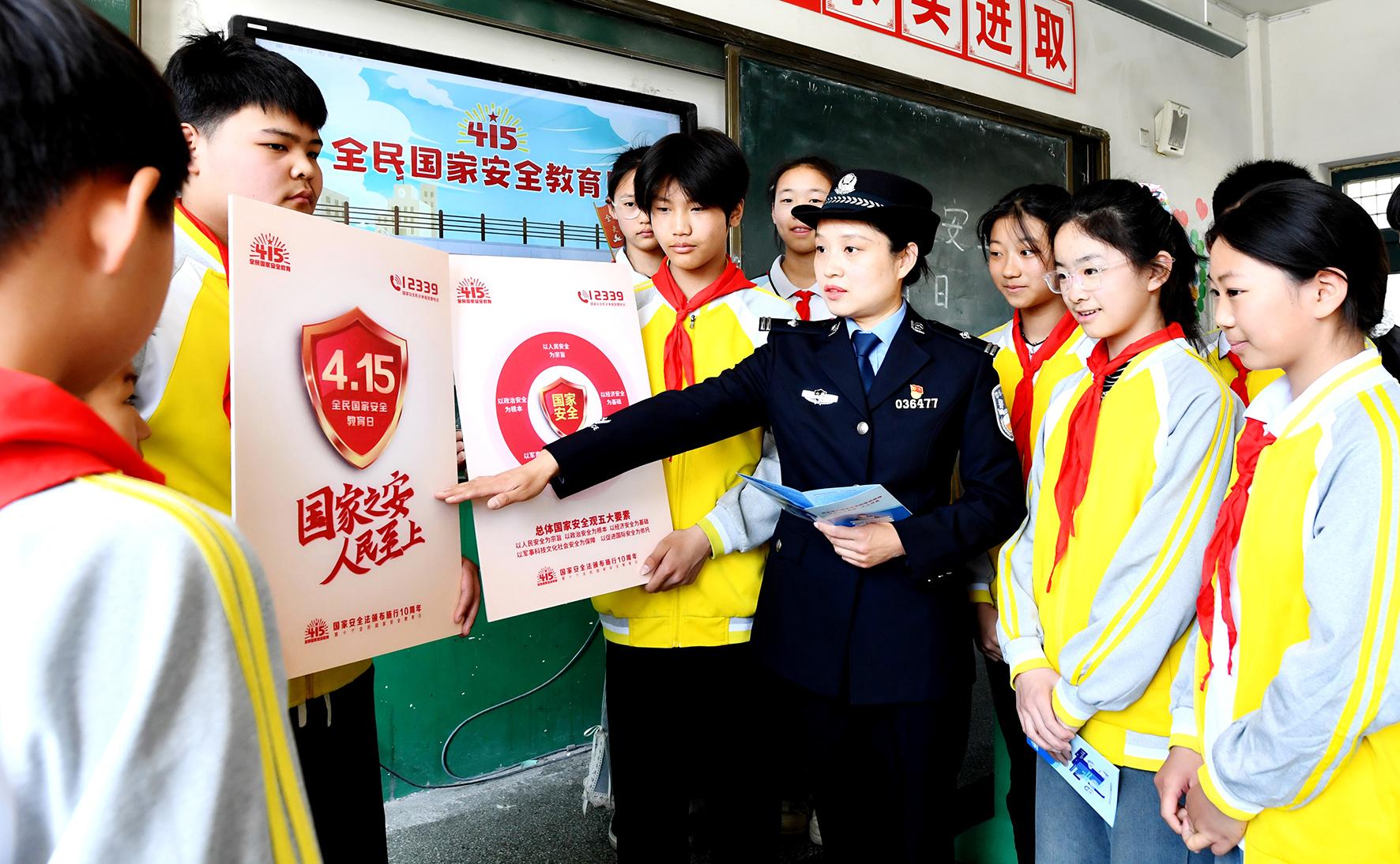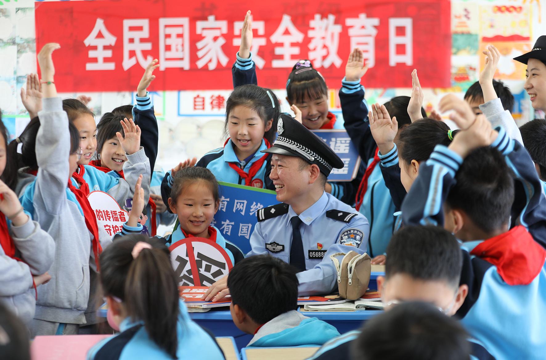 4月14日,山東省棗莊市公安局臺兒莊分局民警走進明遠實驗小學開展全民國家安全教育日進校園活動。