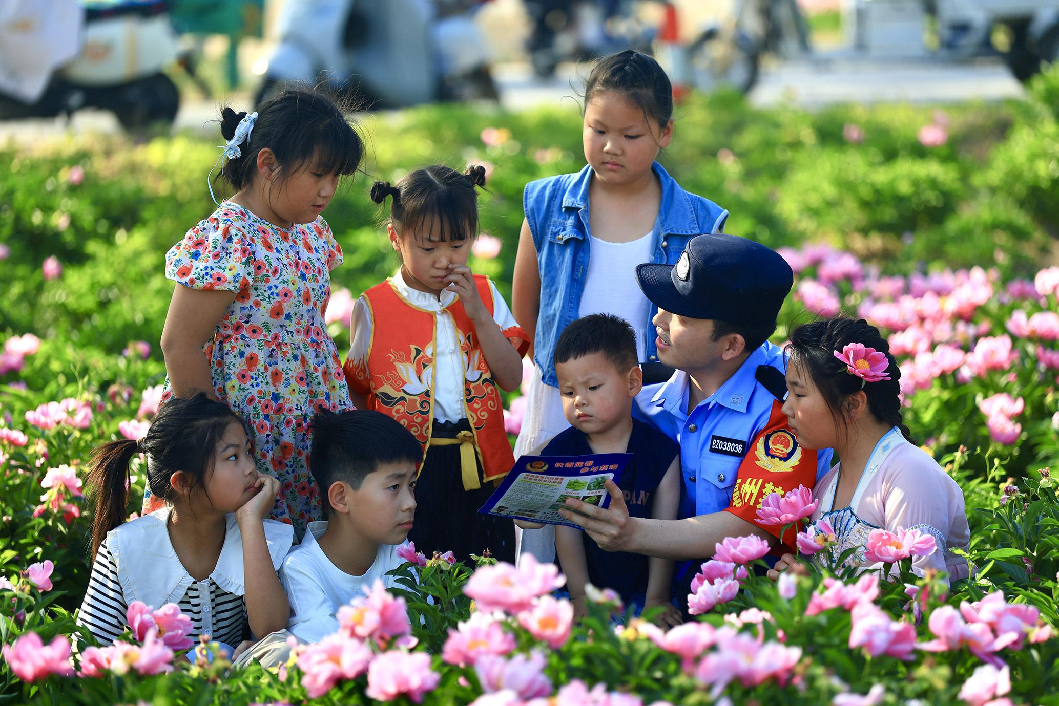 5月1日,安徽省亳州市公安局禁毒支隊(duì)民警走進(jìn)芍藥花海大世界,開(kāi)展禁毒宣傳活動(dòng)。