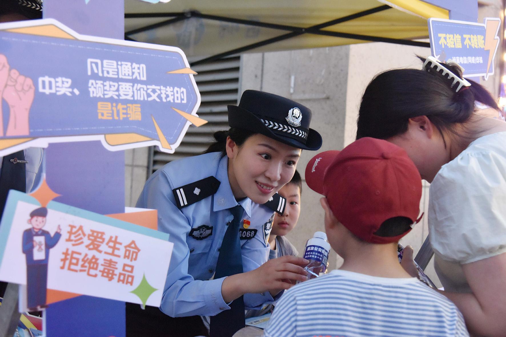 5月1日,安徽省當(dāng)涂縣公安局將“平安小鋪”開(kāi)進(jìn)夜市,開(kāi)展反詐禁毒、掃黑除惡普法宣傳,全力護(hù)航“夜市經(jīng)濟(jì)”。
