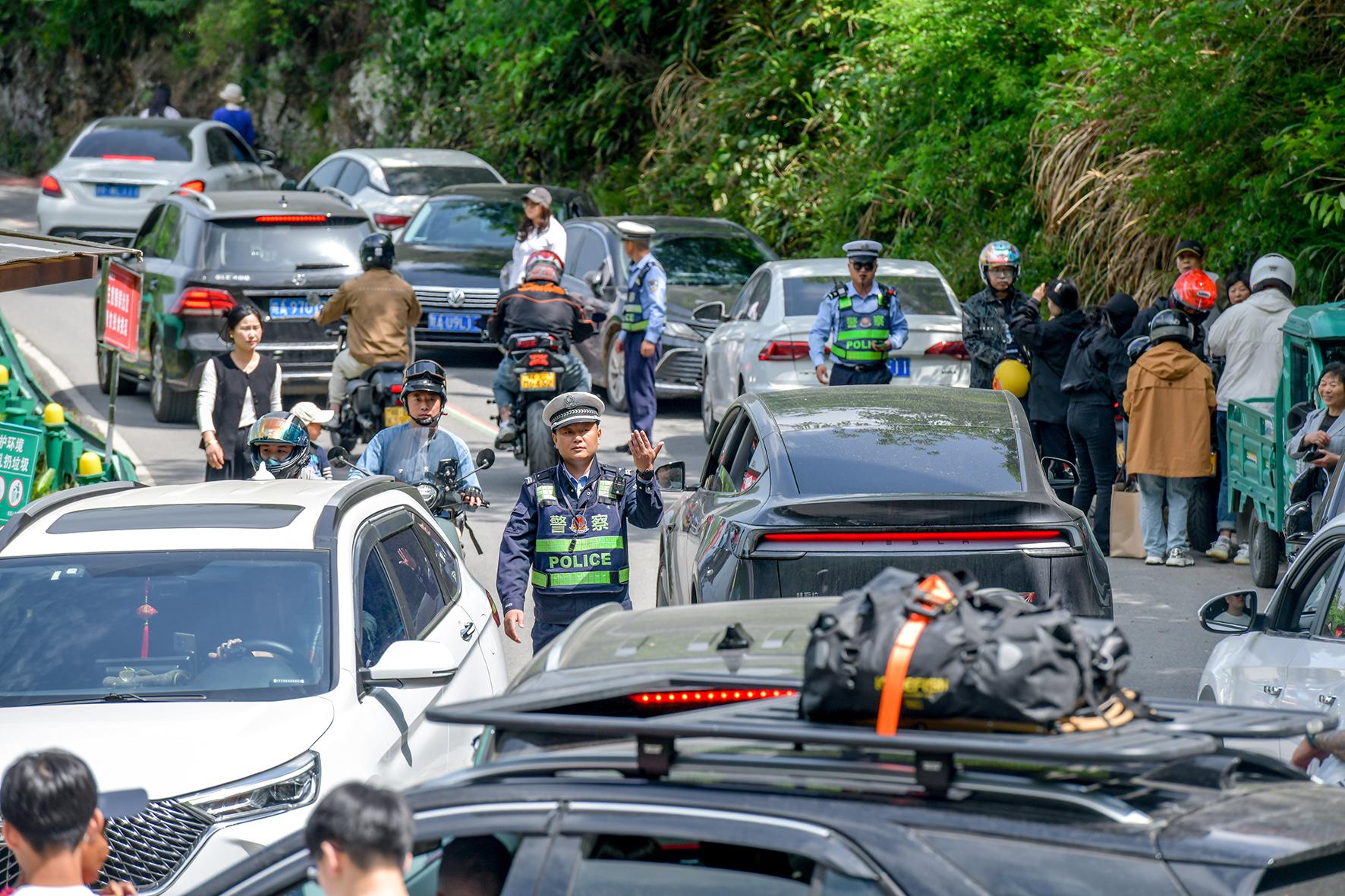 5月1日,安徽涇縣“皖南川藏線(xiàn)”迎來(lái)客流高峰。涇縣公安局全警動(dòng)員,采取“機(jī)動(dòng)+定點(diǎn)”的工作方式,全力保障道路通暢,為游客打造安全有序的出行環(huán)境。