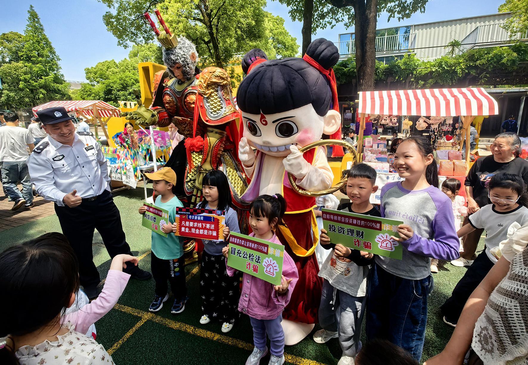 5月1日,浙江省臺(tái)州市公安局椒江分局海門(mén)派出所民警走進(jìn)轄區(qū)兒童樂(lè)園,開(kāi)展反詐宣傳活動(dòng)。