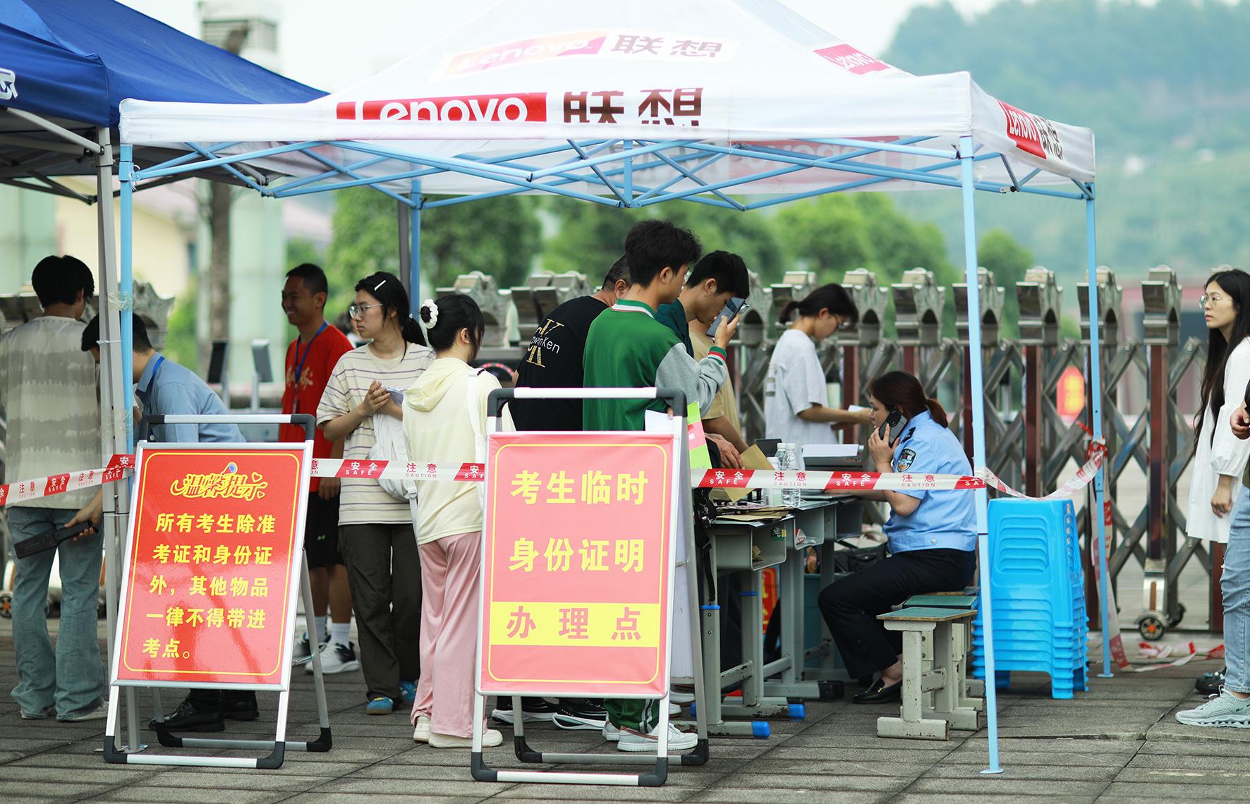 6月7日,貴州省赤水市公安局在第三中學(xué)考點(diǎn)設(shè)置臨時(shí)身份證辦理點(diǎn)。