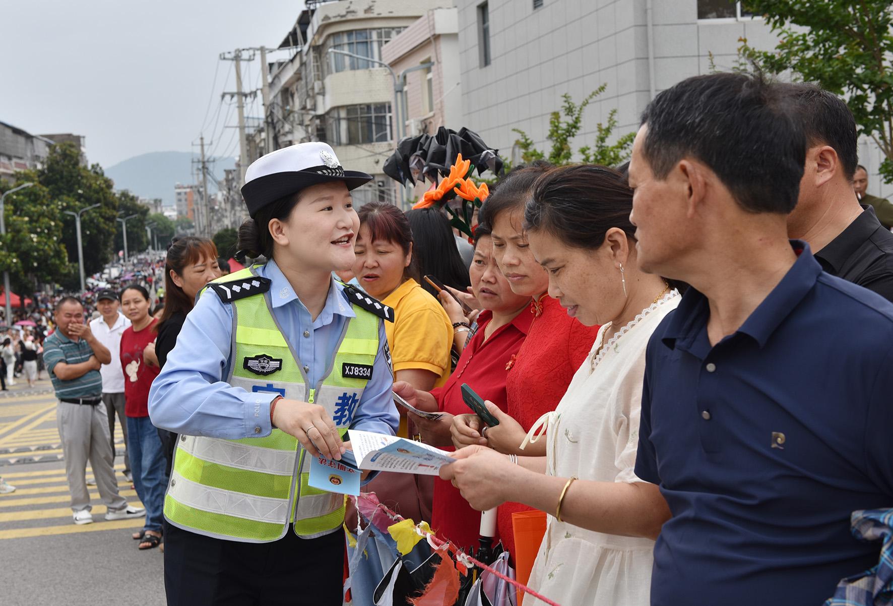 6月9日,安徽省宿松縣公安局交警大隊(duì)護(hù)考民輔警向家長(zhǎng)宣傳防交通事故 、防溺水、防網(wǎng)絡(luò)詐騙知識(shí)。