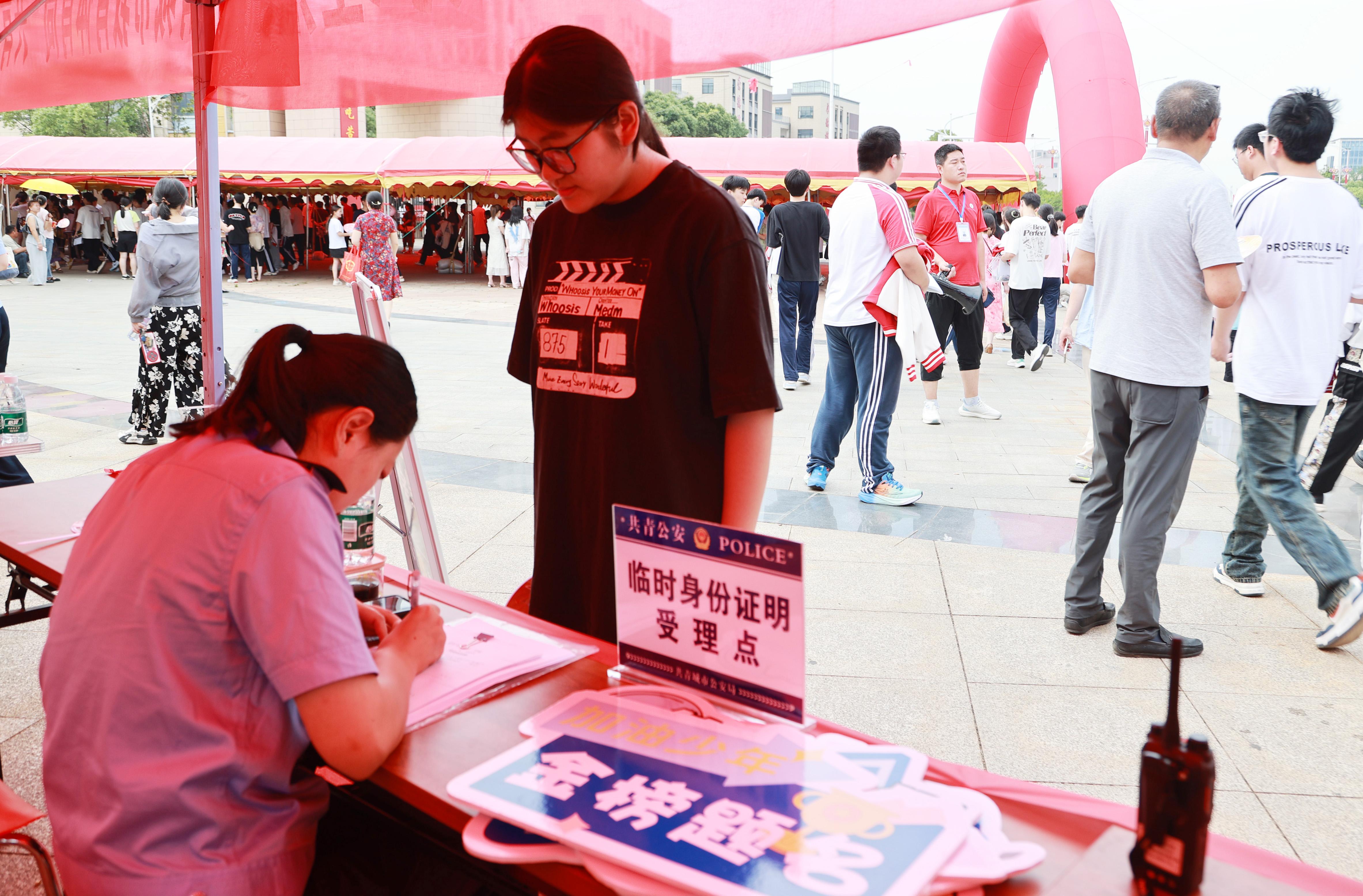 6月7日,江西省共青城市公安局在考點(diǎn)設(shè)立臨時(shí)身份證明受理點(diǎn)。