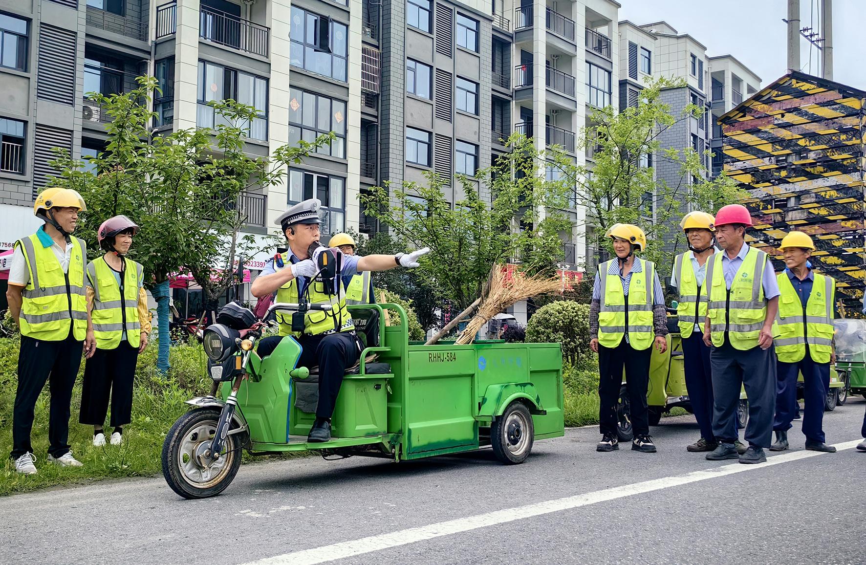 6月11日,安徽省舒城縣公安局交管大隊(duì)五顯中隊(duì)民警走進(jìn)五顯街道,向社區(qū)環(huán)衛(wèi)工人現(xiàn)場講解交通規(guī)則及安全防護(hù)知識。