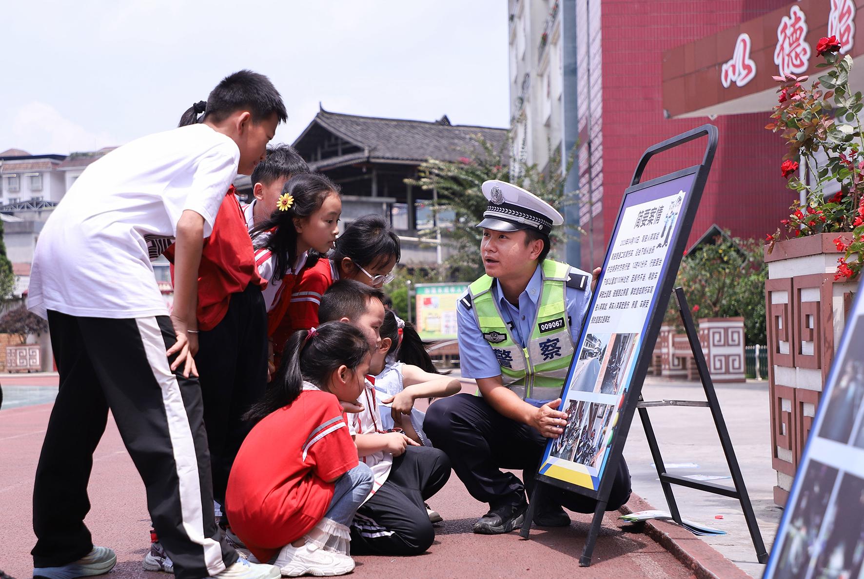 7月8日,貴州省丹寨縣交警大隊(duì)民警走進(jìn)轄區(qū)城關(guān)二小,為同學(xué)們上了一堂暑假交通安全課。