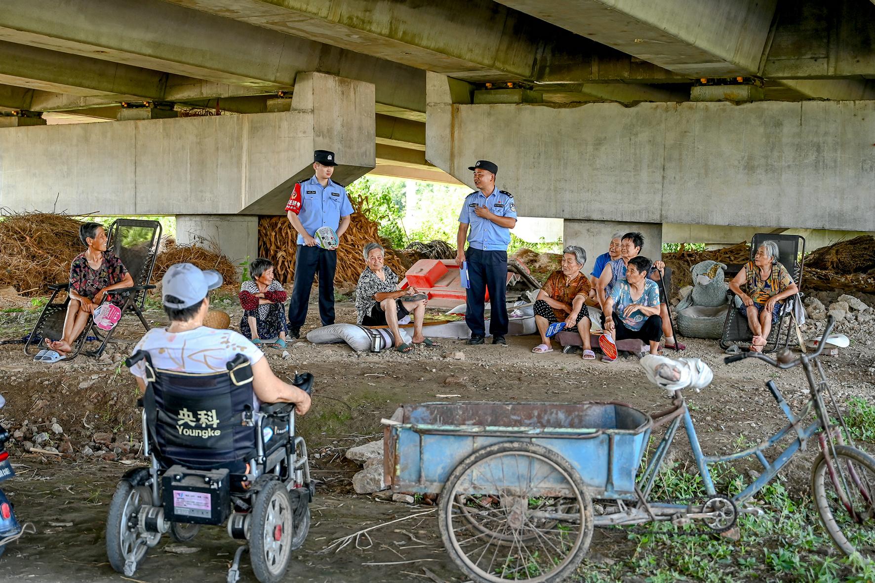 7月9日,安徽省馬鞍山市和縣公安局民警正在與納涼的村民講解預(yù)防網(wǎng)絡(luò)詐騙、未成年人防溺水等安全知識。連日來,和縣公安局開展“納涼話安全”活動(dòng),嚴(yán)防夏季安全事故發(fā)生。