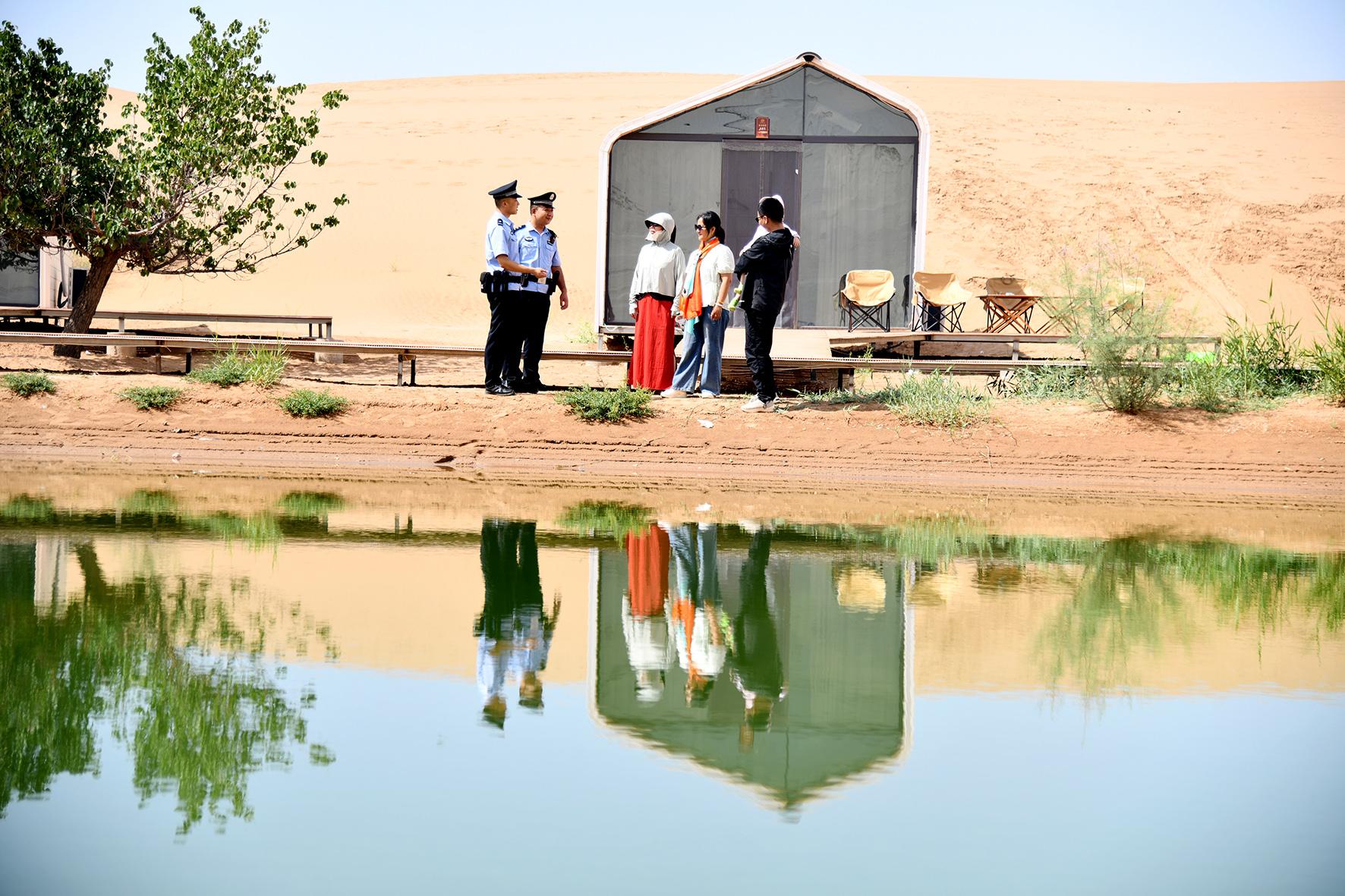 7月17日,甘肅省臨澤縣公安局板橋派出所民輔警加大對(duì)金沙灣旅游度假景區(qū)執(zhí)勤巡邏力度,提高景區(qū)見警率,全力守護(hù)景區(qū)游客安全。