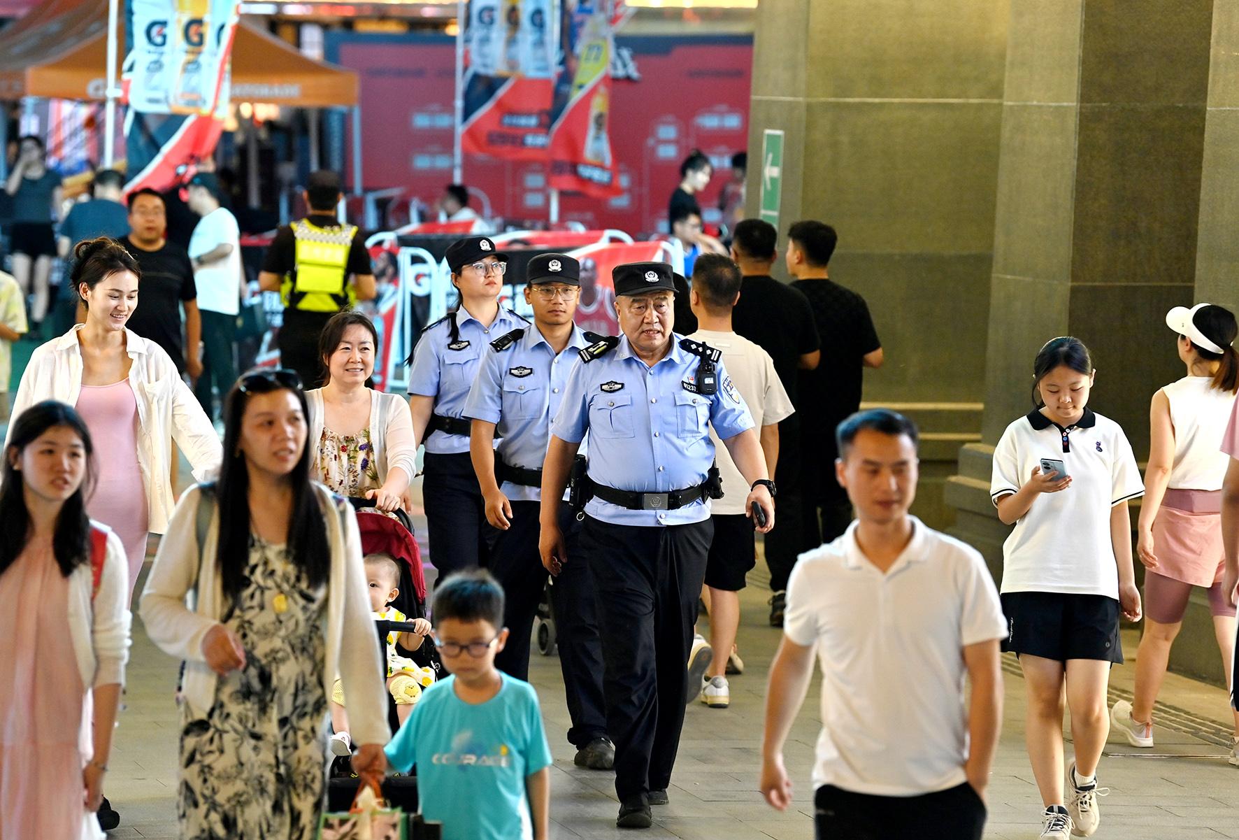 7月22日晚,甘肅省派出所蘭州市公安局七里河分局土門墩派出所民警在蘭州老街巡邏防控,守護夏日煙火氣。