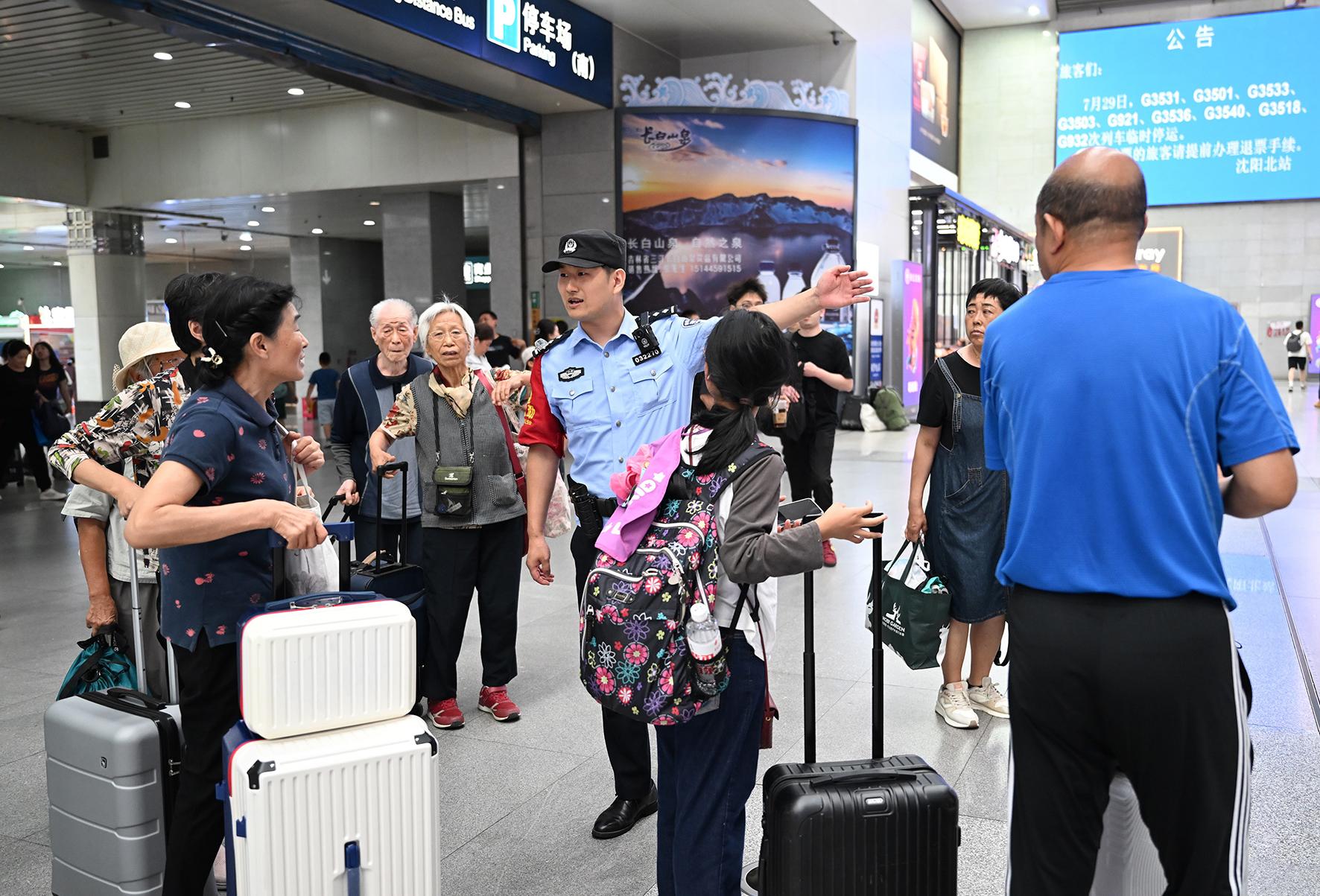 7月29日,沈陽(yáng)鐵路公安處沈陽(yáng)北站派出所針對(duì)暑運(yùn)期間學(xué)生流、家庭游旅客流激增的情況,增派警力在候車(chē)室開(kāi)展安全提醒服務(wù)。