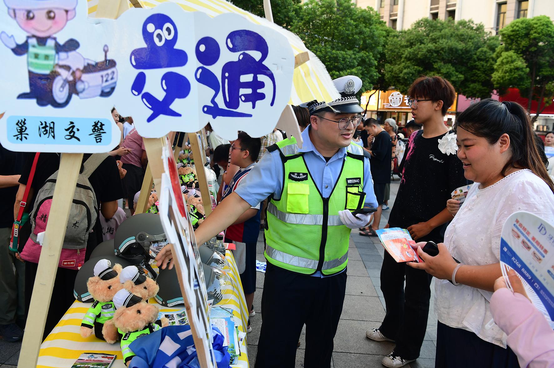 8月3日,安徽省巢湖市公安局交警大隊在商場門前開展現(xiàn)場送安全大禮活動,旨在倡導合法合規(guī)出行,共筑電動車騎行安全防線。