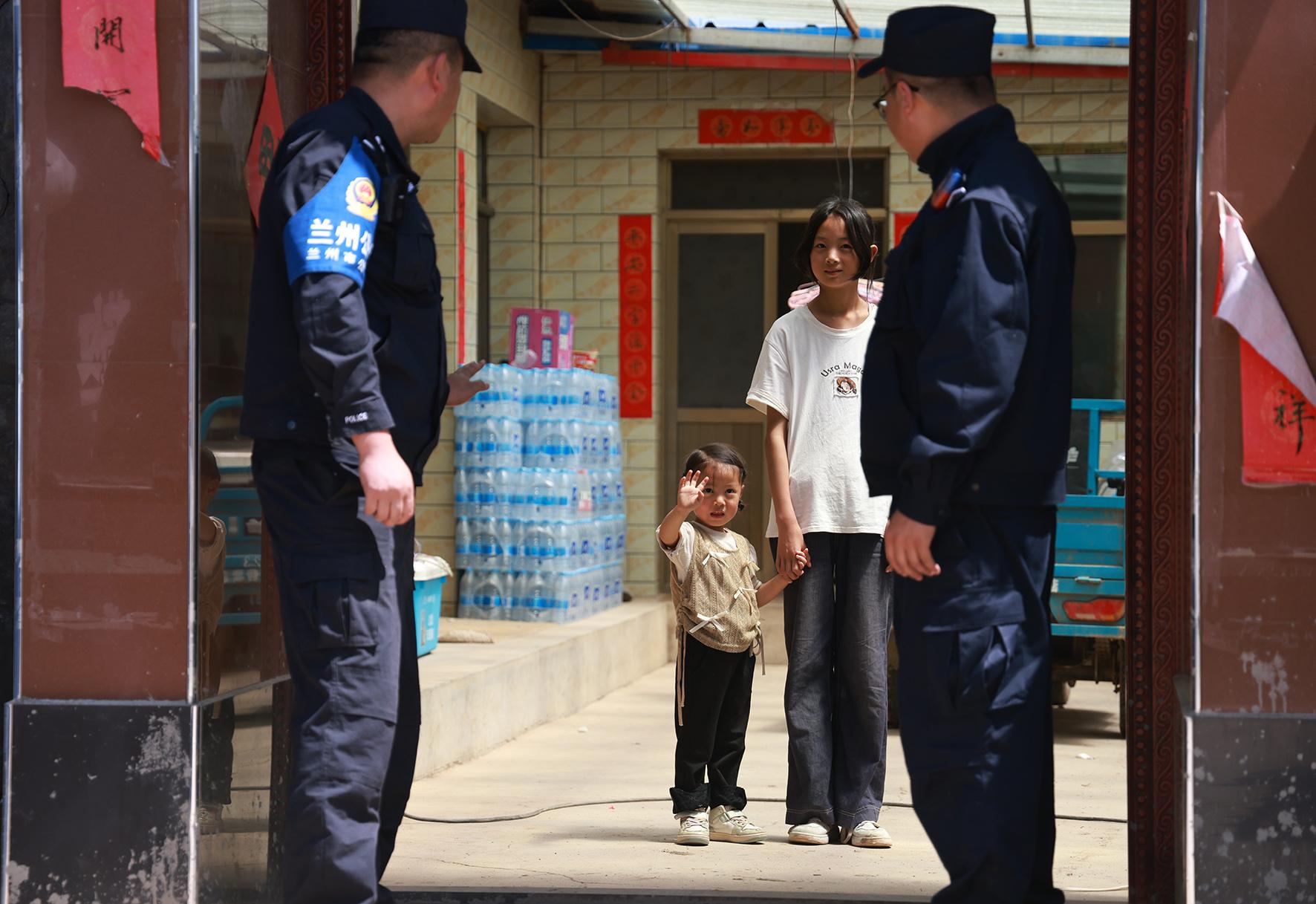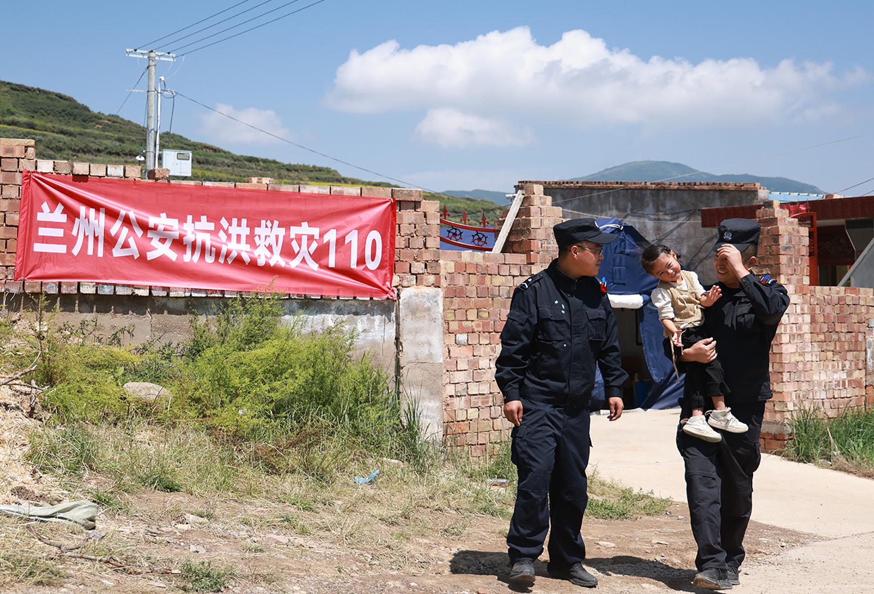 “叔叔來啦!”8月14日,在甘肅榆中縣新營鎮(zhèn)八門寺小泥窩村的公安指揮部帳篷里,一聲清脆稚嫩的呼喊打破了忙碌的氛圍,小女孩瑤瑤像一只歡快的小鳥,一頭撲進(jìn)蘭州市公安局新區(qū)分局輔警蘇明凱、張?jiān)品宓膽牙铩?/p>