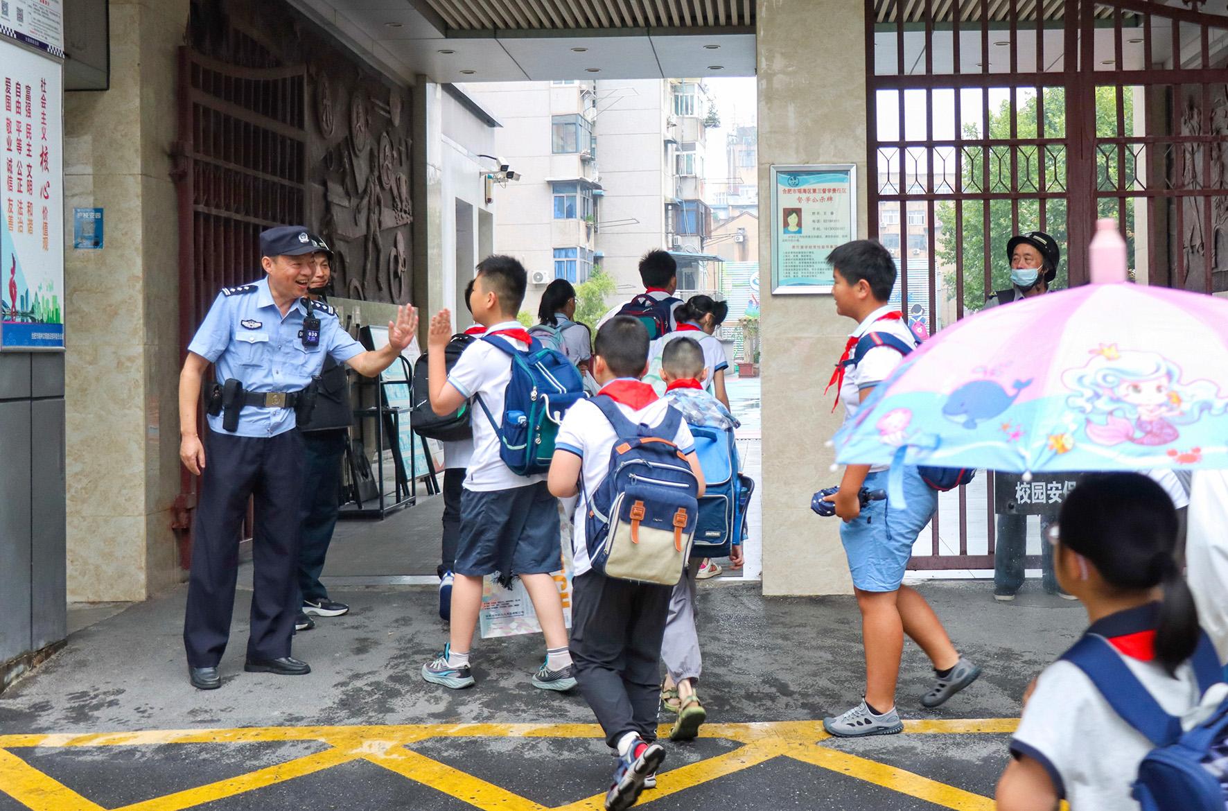 9月1日,安徽省合肥市公安局瑤海分局大通路派出所民警在滁州路小學(xué)護(hù)學(xué)崗執(zhí)勤。