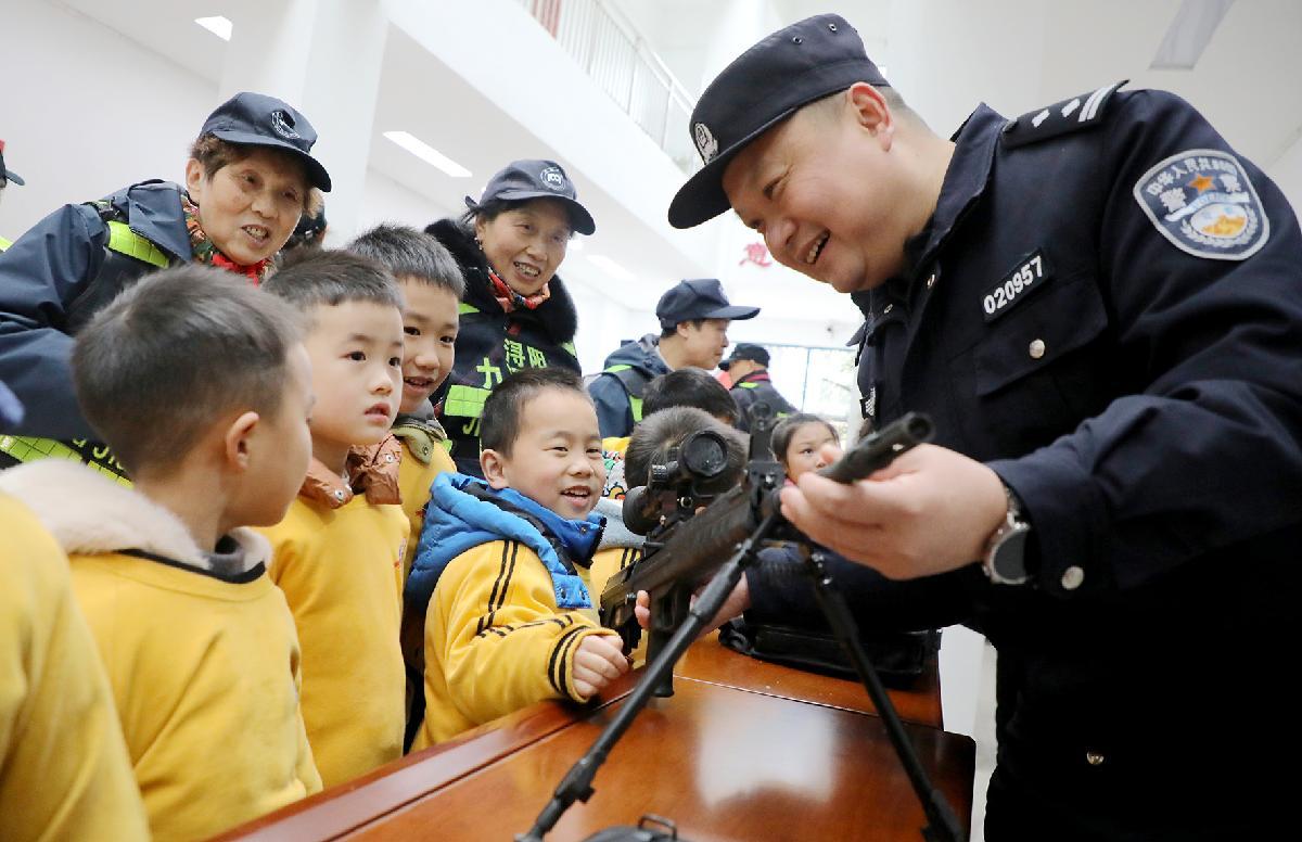 1月5日,江西省九江市公安局特巡警支隊(duì)潯陽(yáng)大隊(duì)舉行警營(yíng)開(kāi)放日活動(dòng),邀請(qǐng)轄區(qū)小金星幼兒園50余名小朋友走進(jìn)警營(yíng),開(kāi)展形式多樣的參觀互動(dòng)活動(dòng)。