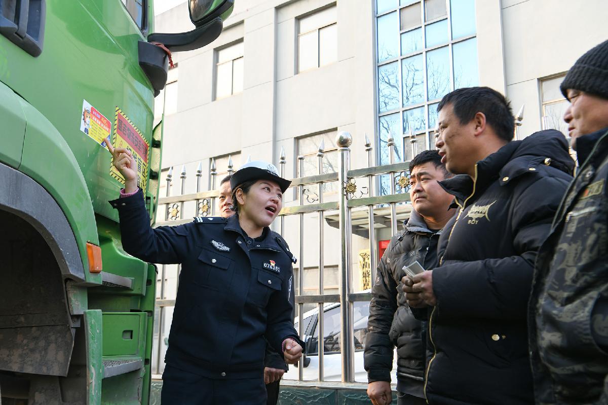 圖為民警向駕駛員重點解讀主城區(qū)貨車通行管理的相關(guān)規(guī)定及冬季行車安全注意事項。