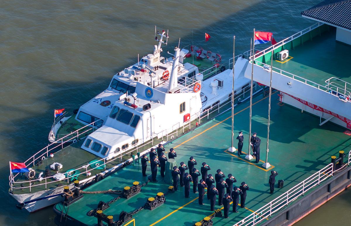 1月7日,在第六個中國人民警察節(jié)來臨之際,江蘇出入境邊防檢查總站鎮(zhèn)江邊檢站與長航鎮(zhèn)江派出所在江蘇鎮(zhèn)江經(jīng)開區(qū)水上躉船聯(lián)合舉行慶祝儀式。